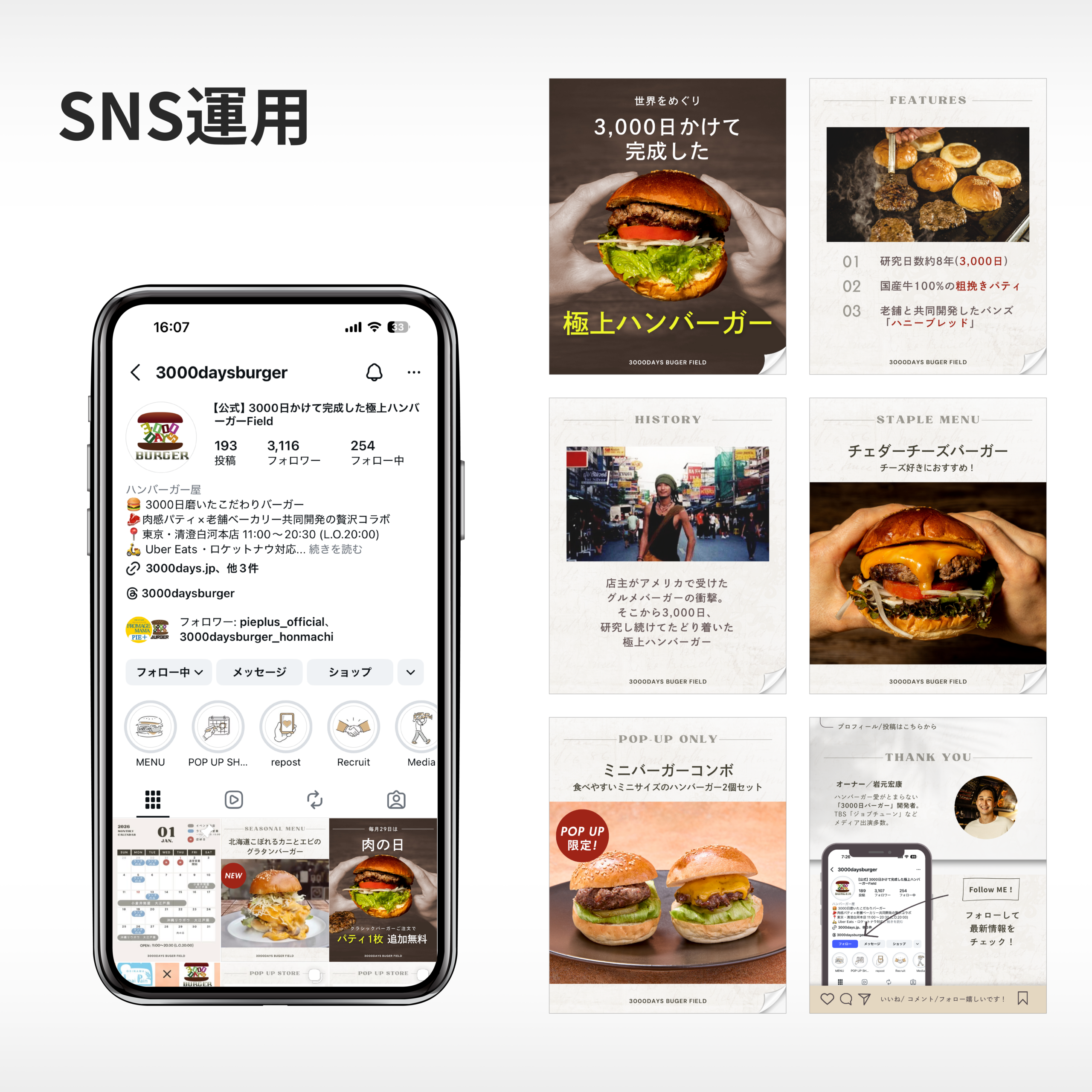 「3000日かけて完成した極上バーガー」の公式Instagramアカウントを運用しています。