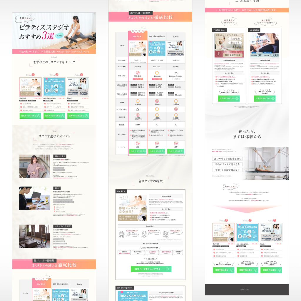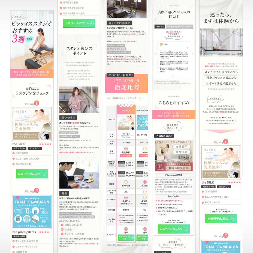 ピラティススタジオの体験申込を目的としたランディングページの制作を行いました。
